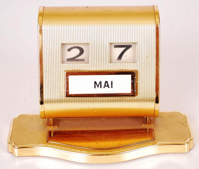 Leírás: Retró, fém, asztali mechanikus naptár /