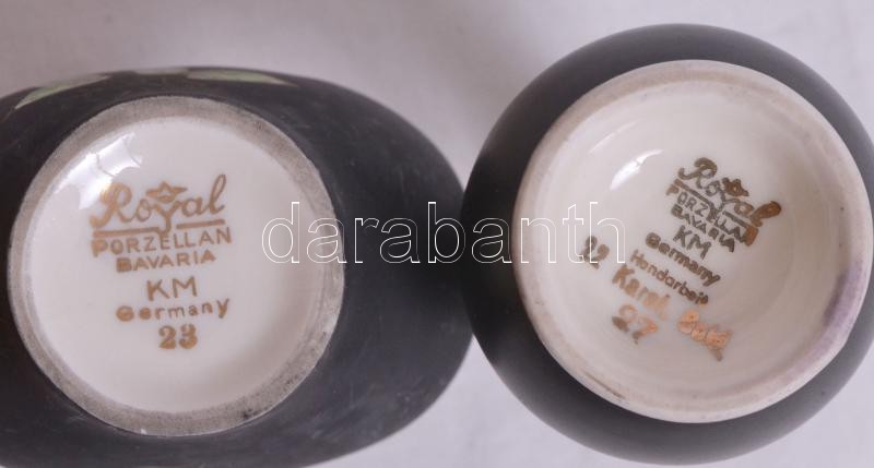 Leírás: 2 db Royal Bavaria vázácska, jelzett, apró csorbákkal, kézzel festett, m: 10,12 cm / German porcelain vases with small notch