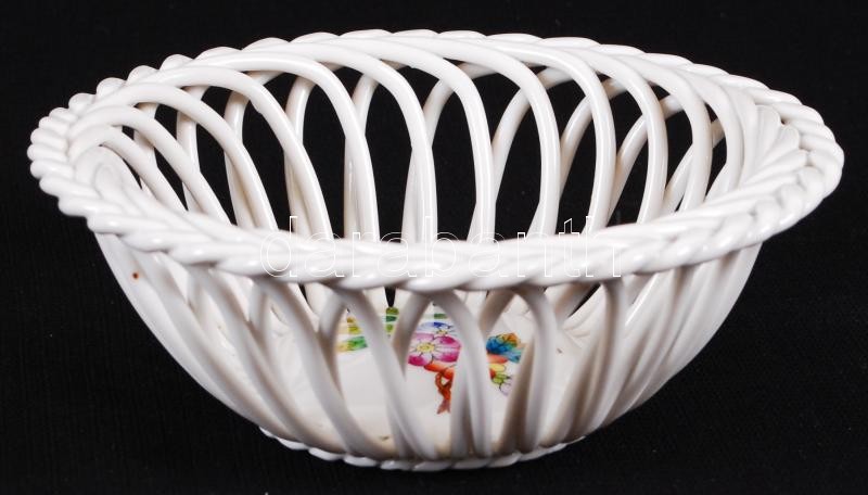 Leírás: Kézzel festett, Viktória mintás Herendi porcelán hibátlan fonott kosárka. /