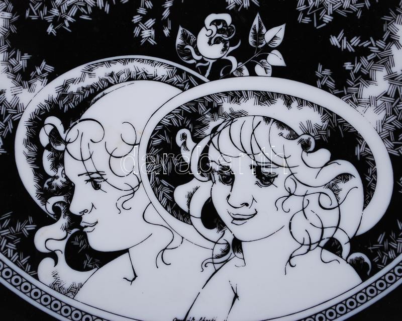 Leírás: Szász Endre u.: Arcok c. Hollóházi porcelán bonbonnier /