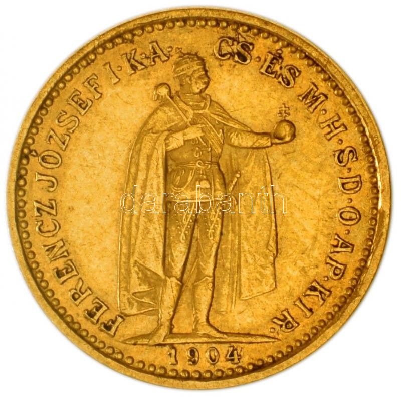 Hungary 1904. 10 Kr... https://www.darabanth.com/hu/179-Gyorsarveres/179.0/Numizmatika/Magyar-es-kulfoldi-arany-penzek~300011/194KB-10K-Au-Ferenc-Jozsef-339g0900-T22--3Cbr3EHungary-1904-10-Kronen-Au-Franz-Joseph-I~II633583