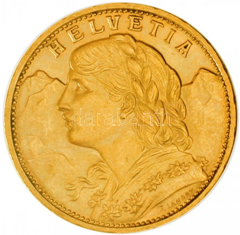 Leírás: Svájc 1914B 20Fr Au "Helvetia" (6.46g/0.900) T:1-