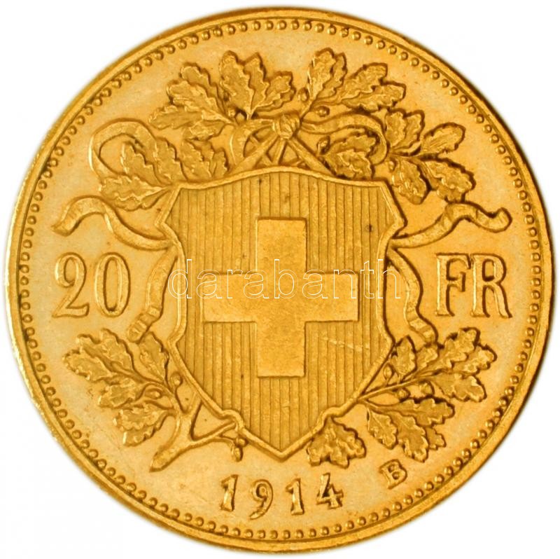 Switzerland 1914B 20... https://www.darabanth.com/hu/179-Gyorsarveres/179.0/Numizmatika/Magyar-es-kulfoldi-arany-penzek~300011/Svajc-1914B-20Fr-Au-Helvetia-646g0900-T1--3Cbr3ESwitzerland-1914B-20-Frank-Au-Helvetia-6~II635709