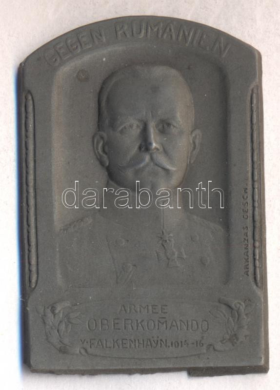 German Empire 1914-1916. "Gegen Rumänien, Armee Oberkommando, v. Falkenhayn 1914 - 1916" zin cap badge (42x38m) maker: Arkanzas Gesch., without pin C:XF