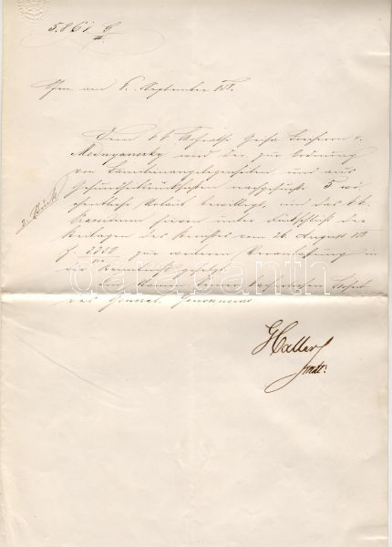 Leírás: 1858 Levél magyarország főkormányzójának levélpapírján Gróf Haller aláírásával