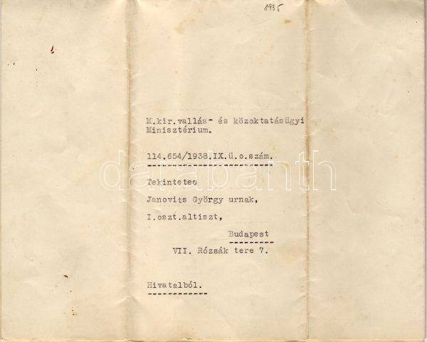 Leírás: 1938 Kinevezés Gróf Teleki Oál vallás és közoktatásügyi miniszter, későbbi miniszterelnök aláírásával