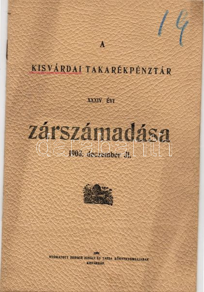 1903 A Kisvárdai Takarékpénztár zárszámadása https://www.darabanth.com/hu/18-Gyorsarveres/18.0/Festmeny-mutargy-papirregiseg-egyeb/Nyomtatvanyok~219/1903-A-Kisvardai-Takarekpenztar-zarszamadasa~II31898