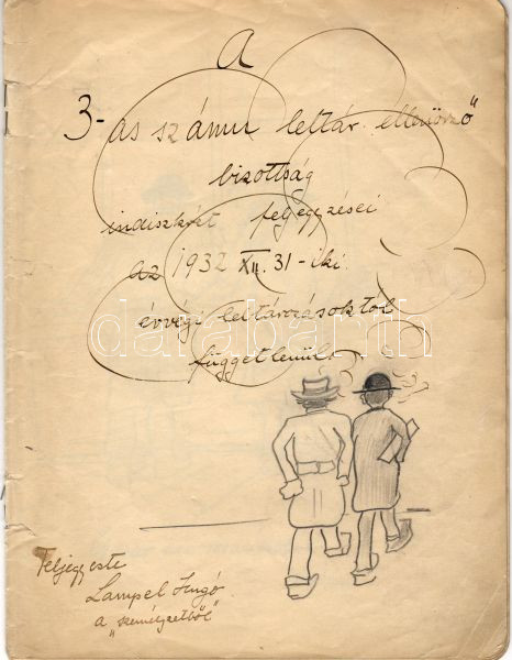 Leírás: 1932 Évvégi leltár humoros kézzel rajzolt füzet