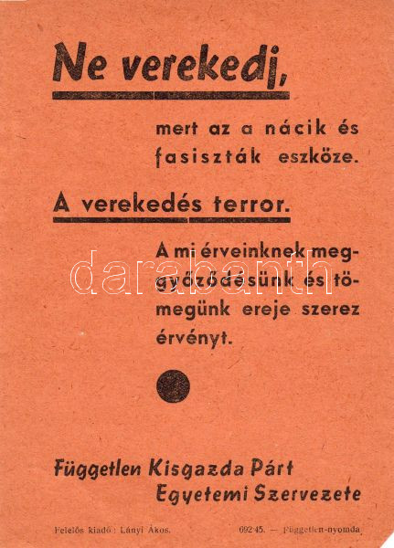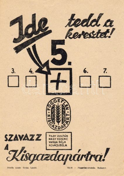 1945 6 db kisgazda választási propaganda röplap https://www.darabanth.com/hu/18-Gyorsarveres/18.0/Festmeny-mutargy-papirregiseg-egyeb/Nyomtatvanyok~219/1945-6-db-kisgazda-valasztasi-propaganda-roplap~II32567