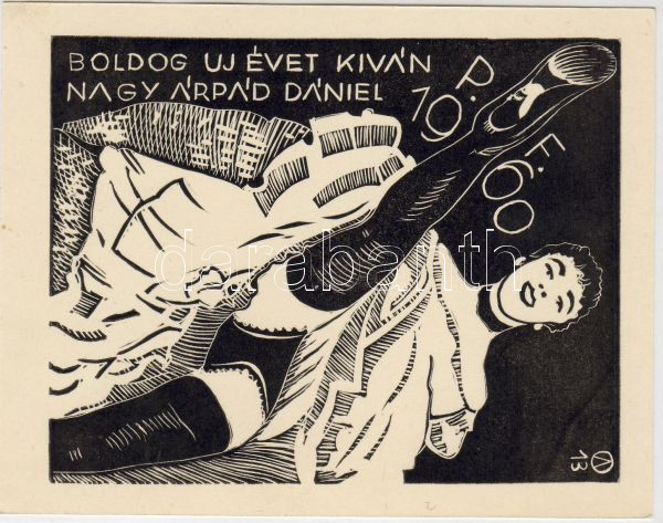 1960 Újévi üdvözlő linómetszet https://www.darabanth.com/hu/18-Gyorsarveres/18.0/Festmeny-mutargy-papirregiseg-egyeb/Nyomtatvanyok~219/1960-Ujevi-udvozlo-linometszet~II32430