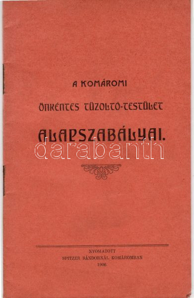 A komáromi önkéntes tűzoltó-testület alapszabályai; Komárom 1906 Spitz... https://www.darabanth.com/hu/18-Gyorsarveres/18.0/Festmeny-mutargy-papirregiseg-egyeb/Nyomtatvanyok~219/A-komaromi-onkentes-tuzolto-testulet-alapszabalyai-Komarom-1906-Spitzer-Sandor~II32155