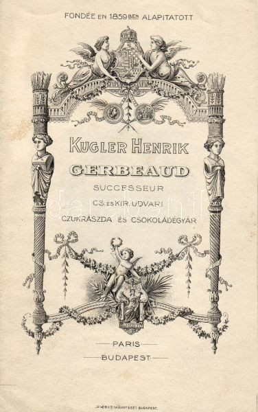 Leírás: Ca 1860 Kugler Henrik Gerbeaud reklám nyomtatvány