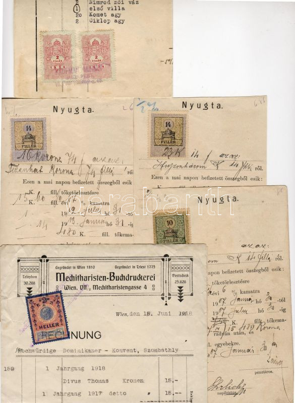 Leírás: 1904-1937 5 db nyugta okmánybélyeggel, közte 1 osztrák