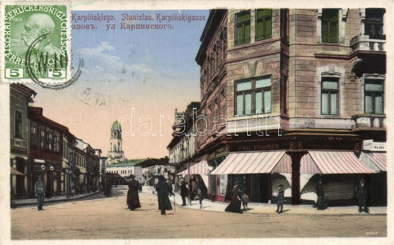 Ivano-Frankivsk, Stanislawów; Ul. Karpinskiego / Karpinski street with... https://www.darabanth.com/hu/18-Nagyaukcio/18.1/Kulfoldi-kepeslapok/Ukrajna~6247/Ivano-Frankivsk-Stanislawow-Ul-Karpinskiego-Karpinski-street-with-Emil-Taubers-shop-town-hal~II862641