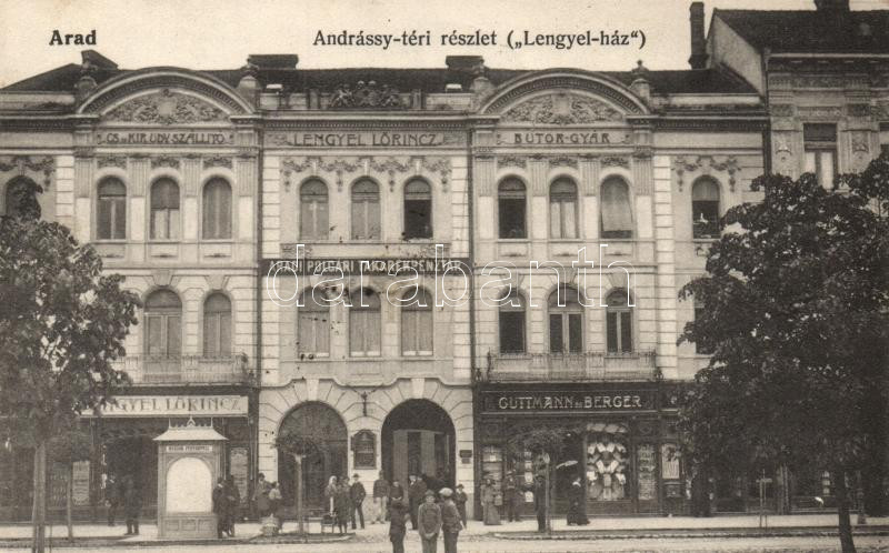 Arad, Andrássy tér, Lengyel Lőrinc bútorgyár, Polgári Takarékpénztár, ... https://www.darabanth.com/hu/18-Nagyaukcio/18.1/Magyar-kepeslapok/Erdely~6147/Arad-Andrassy-ter-Lengyel-Lorinc-butorgyar-Polgari-Takarekpenztar-Guttman-es-Berger-u~II855003