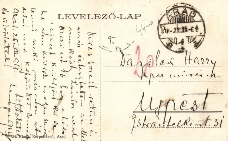 Leírás: Arad, Andrássy tér, Lengyel Lőrinc bútorgyár, Polgári Takarékpénztár, Guttman és Berger üzlete, fényképész, Kerpel Izsó kiadása / square, furniture shop, bank, photographer (EK)