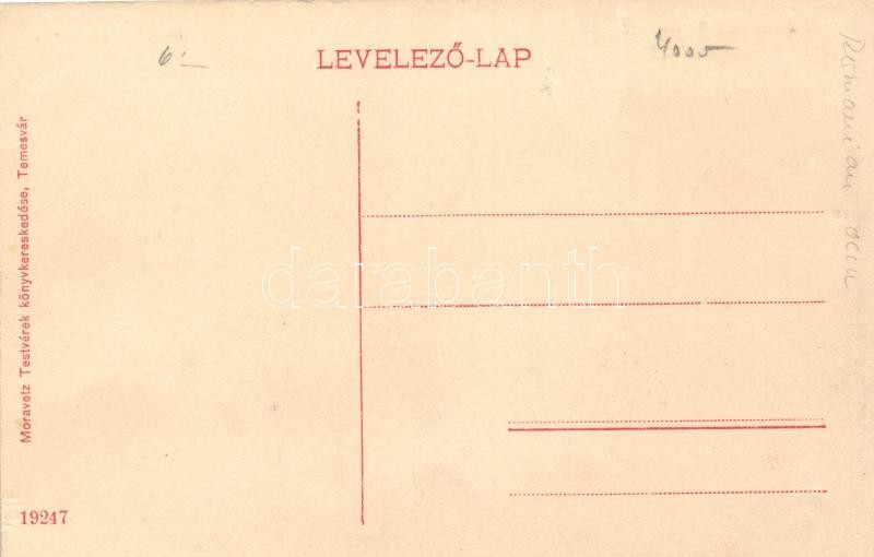 Leírás: Temesvár, Józsefváros, zárda; kiadja a Moravetz testvérek könyvkereskedése / cloister