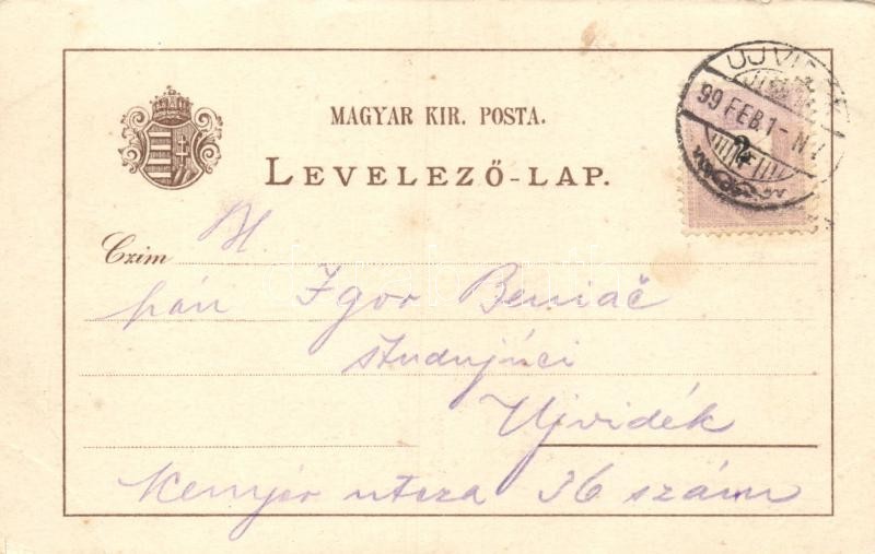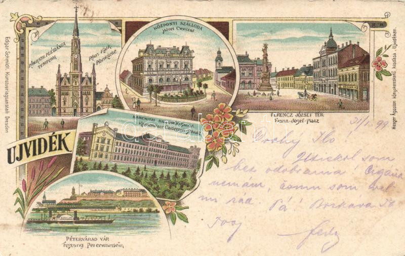 Leírás: 1899 Újvidék, Kamenitzi hadapród iskola, Herger Ágoston könyvkereskedése, SS Achilles / military school, bookshop, steamship, litho