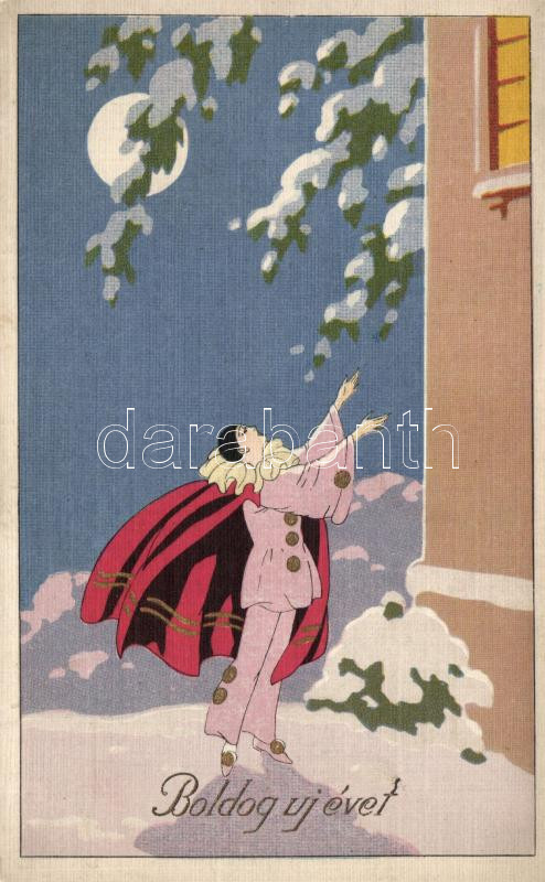 New Year, Italian art postcard 'Fortuna' No. 2285. romantic clown https://www.darabanth.com/hu/18-Nagyaukcio/18.1/Motivum-kepeslapok/Olasz-muveszlapok~6274/New-Year-Italian-art-postcard-Fortuna-No-2285-romantic-clown~II858014