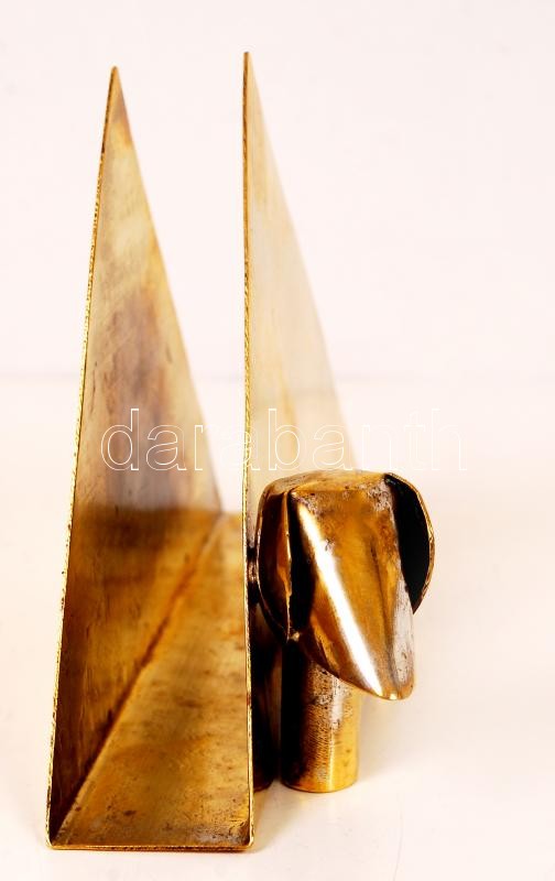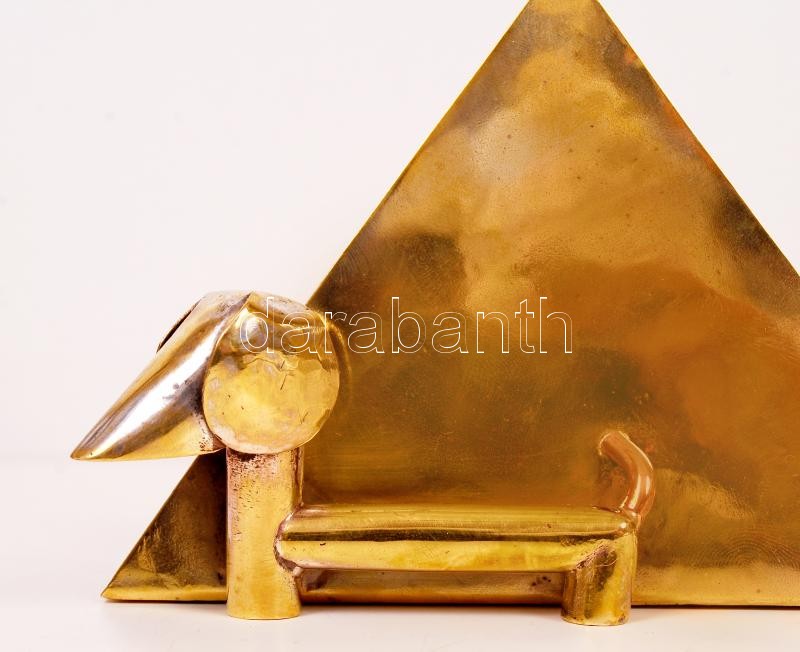 Leírás: Tevan Margit (1901-1978): Szalvétatartó kutyussal, kézi munka, ezüstözött sárgaréz, jelzett, m:9,5 cm, h:13,5 cm