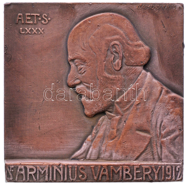 Körmendi Frimm Jenő (1886-1959) 1912. "Vámbéry Ármin" orientalista, egyetemi tanár, a Magyar Tudományos Akadémia tagja bronz plakett (60x60mm) T:2-
