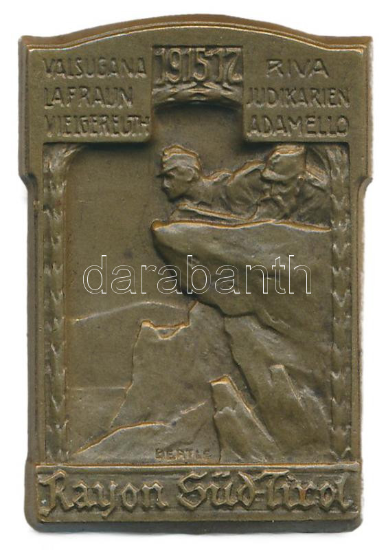 Austro-Hungarian Monarchy 1915-1917. "Rayon Süd-Tirol" cap badge with makers mark "ENTWURF: H.BERTLE AUSGEF.ATELIER G. GURSCNER WIEN VII/2" (35x24mm) C:AU