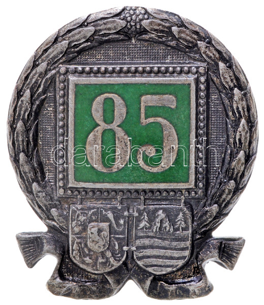 Leírás: Osztrák-Magyar Monarchia ~1915. "85. Gyalogezred" zománcozott alpakka sapkajelvény (33x28mm) T:2