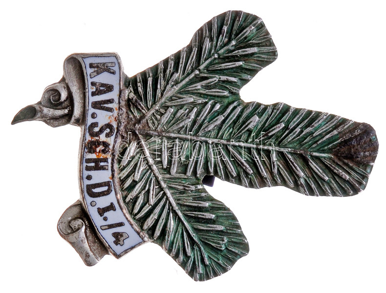 Leírás: Osztrák-Magyar Monarchia ~1915. "I./4 Lovas Lövész Osztály" zománcozott fém sapkajelvény (37x30mm) T:2