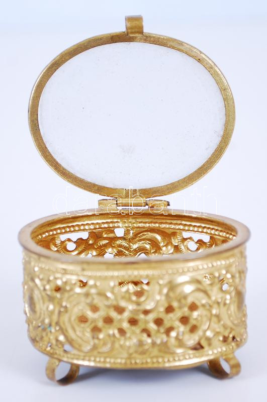Leírás: Áttört, növényi díszítésű, réz ékszeresdobozka /