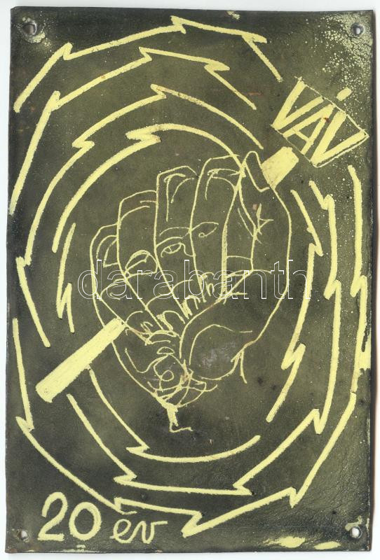 VÁV 20 év zománc tábla, 15×10 cm https://www.darabanth.com/hu/180-Gyorsarveres/180.0/Festmeny-mutargy-papirregiseg-egyeb/Bolhapiac~400011/VAV-20-ev-zomanc-tabla-15C39710-cm~II626113