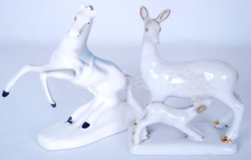 Leírás: 2 db jelzett, őz és gidája, ágaskodó ló, jelzettek, hibátlanok m:16-17 cm/ Porcelain figures