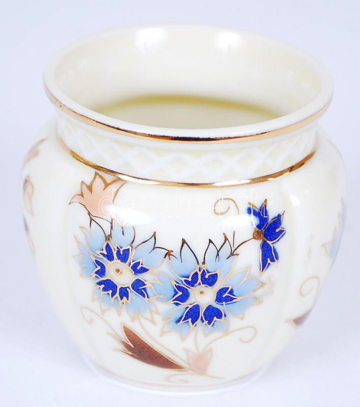 Leírás: Kézzel festett Zsolnay mini kaspó, jelzett, hibátlan / Hand painted Zsolnay vase m:6 cm, d:5 cm