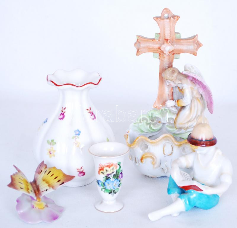 Leírás: Porcelán tétel:Herendi, Zsolnay, Hollóházi, Drasche, jelzés nélküli, hibátlanok, összesen 5 db