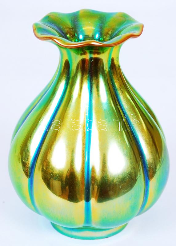 Leírás: Zsolnay zöld eozin mázas váza, jelzett, hibátlan, m:12 cm/ Zsolnay eosin vase