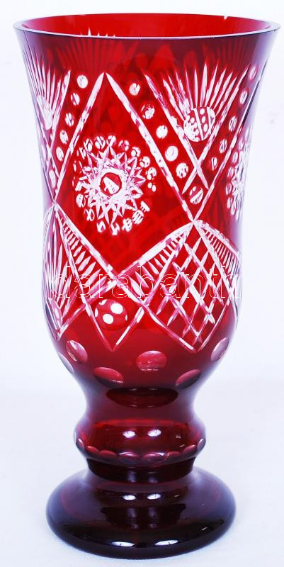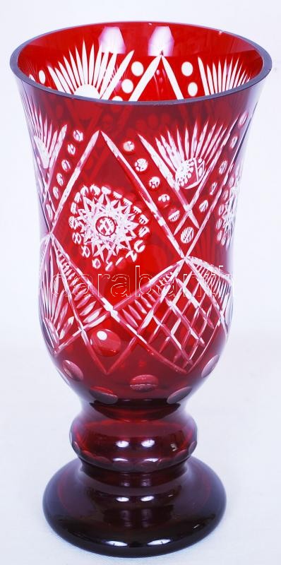 Rubin vörös kristály váza, többrétegű, csiszolt, hámozott, m:27 cm / C... https://www.darabanth.com/hu/180-Gyorsarveres/180.0/Festmeny-mutargy-papirregiseg-egyeb/Uvegtargyak~400008/Rubin-voros-kristaly-vaza-tobbretegu-csiszolt-hamozott-m27-cm-Crystal-vase~II640421