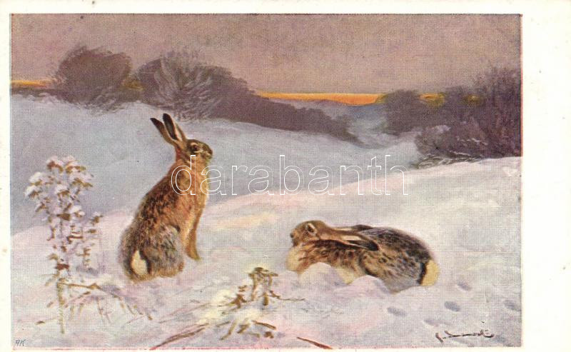 Rabbits in winter, artist signed https://www.darabanth.com/hu/180-Gyorsarveres/180.0/Kepeslapok/Allat~800053/Rabbits-in-winter-artist-signed~II640140