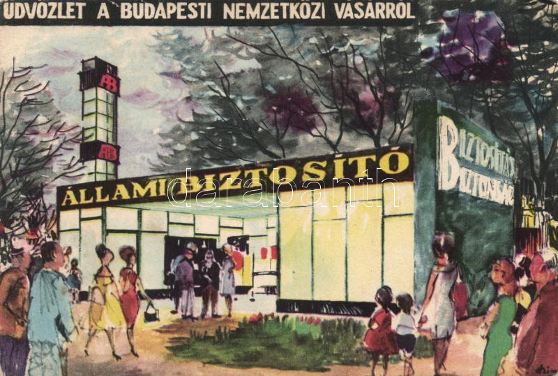 Leírás: Budapest XIV. Városliget Budapesti Nemzetközi Vásár, az Állami Bizotsító pavilonja, szignós / artist signed (EB)