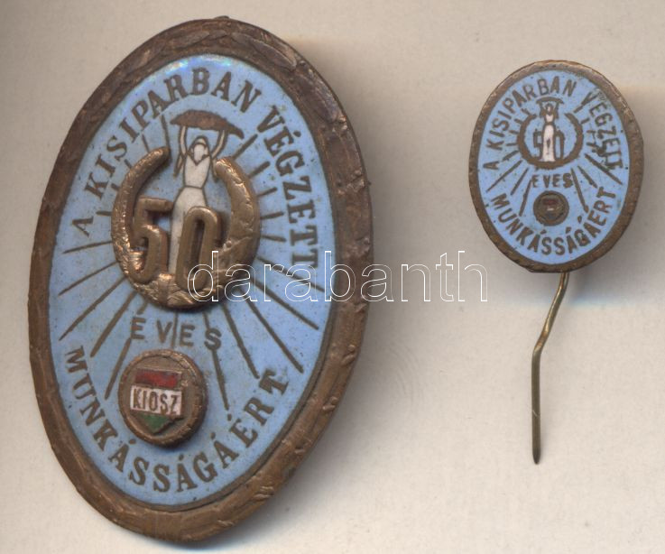 DN. "A Kisiparban végzett munkásságáért - 50 éves KIOSZ" zománcozott j... https://www.darabanth.com/hu/180-Gyorsarveres/180.0/Numizmatika/Falerisztika-Kituntetesek-jelvenyek~200016/DN-A-Kisiparban-vegzett-munkassagaert--50-eves-KIOSZ-zomancozott-jelveny-es-kituzo-T~II643421