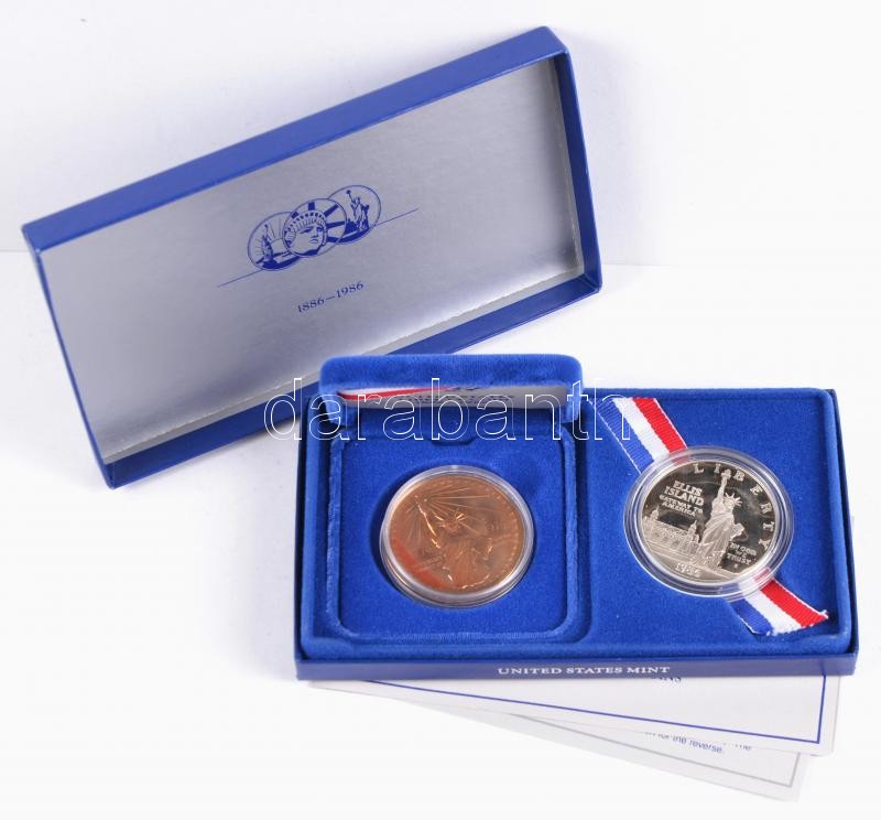 Amerikai Egyesült Államok 1986. 1$ Ag "Szabadság-szobor" + aranyozott emlékérem dísztokban tanúsítvánnyal T:PP
