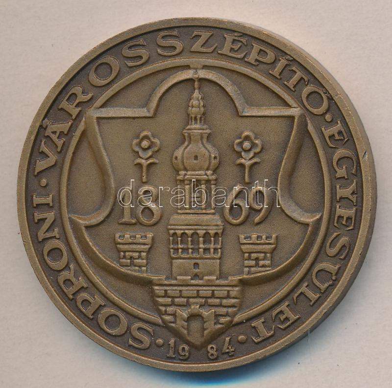 Leírás: Bogár Lívia (1957-) 1984. "Soproni Városszépítő Egyesület" Br emlékérem (49mm/61g) T:1