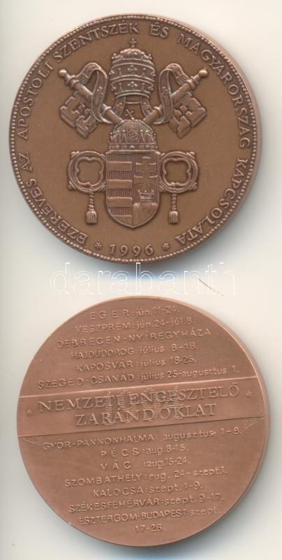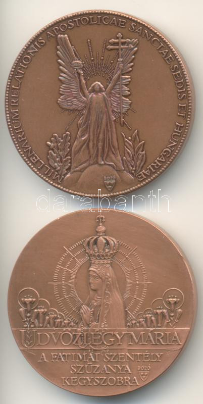 Bozó Gyula (1913-2004) 1994. "Nemzeti Engesztelő Zarándoklat / Fatimai szentély Szűzanya szobra" Br emlékérem (42mm) T:1 + 1996. "Ezeréves az apostoli Szentszék és Magyarország Kapcsolata" Br emlékérem (42,5mm) T:1