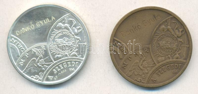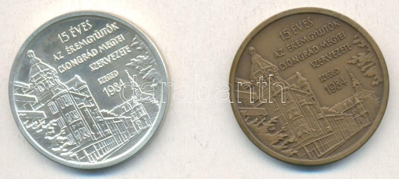 Fritz Mihály (1947-) 1984. "15 éves az Éremgyűjtők Csongrád Megyei Szervezete szeged / Gravírozás: Dankó Gyula" Ag + Br emlékérem pár (36.06g/0.835/42.5mm) T:1-