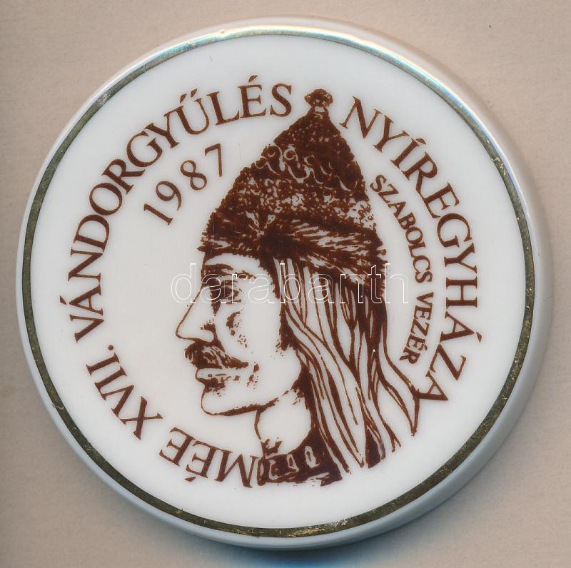 Leírás: Tóth Sándor (1933-) 1987. "MÉE XVII. Vándorgyűlés Nyíregyháza - Szabolcs Vezér" Hollóházi porcelán emlékplakett T:1