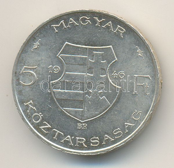 1946. 5Ft Ag "vastag Kossuth" plasztiktokban T:2 https://www.darabanth.com/hu/180-Gyorsarveres/180.0/Numizmatika/Magyar-fem-es-ezustpenzek~200008/1946-5Ft-Ag-vastag-Kossuth-plasztiktokban-T2~II630625