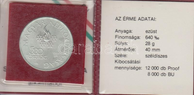 Leírás: 1984. 500Ft Ag "Sarajevoi Téli Olimpia" T:BU Eredeti tokban, tanúsítvánnyal!