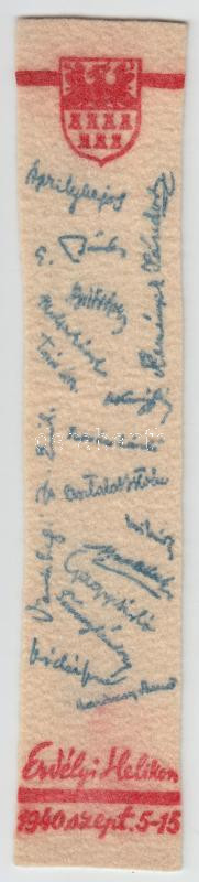 Leírás: 1940 szept 5-15 Erdélyi Helikonos könyvjelző, híres írok nyomott aláírásaival