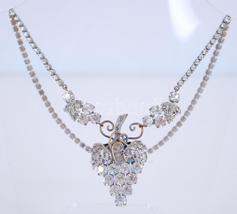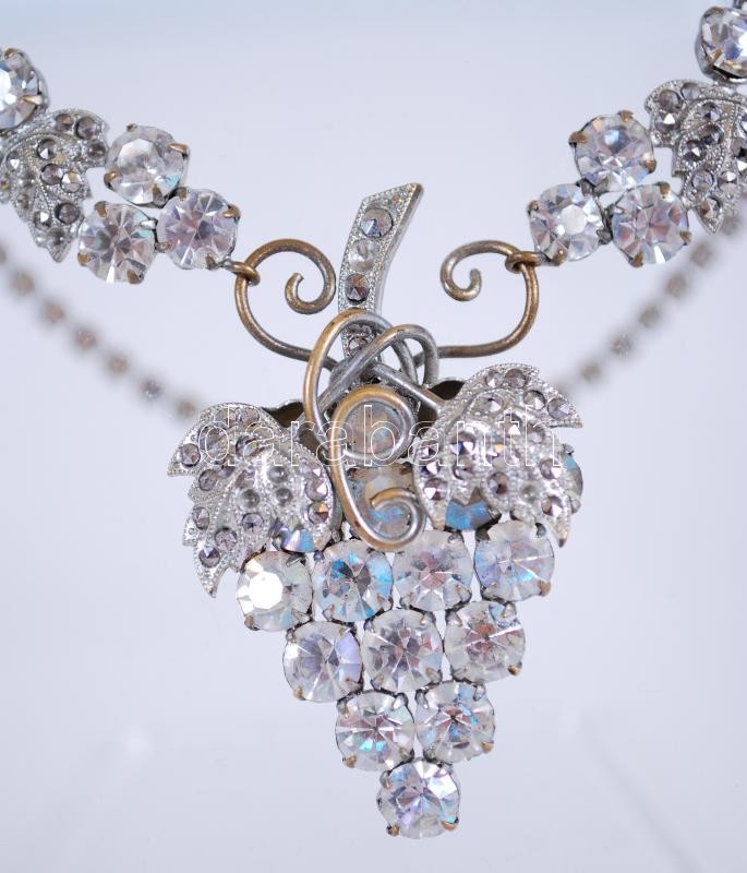 Leírás: Szőlős nyaklánc és karkötő, fém és cirkón, nyaklánc h:26 cm, karkötő h:15 cm