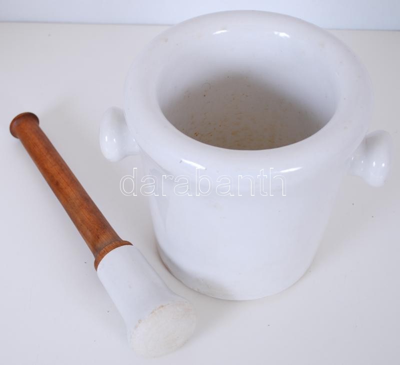 Leírás: cca 1900 "Kőszénbánya 's Téglagyár - Porcellán-Fayencegyár - Drasche Társulat Pesten", nagyméretű, jelzett porcelán gyógyszertári mozsár törővel /