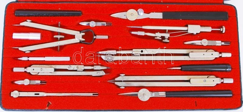 Leírás: cca 1920 Hiánytalan Richter & Co Präcision, Kopernikus IX típusú körzőkészlet / complete set of calipers