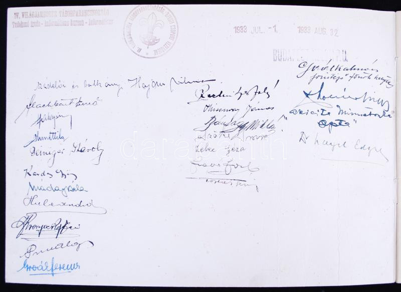 1933 Jamboree memorial booklet for the foreigners with Marton graphics. With signatures of the organisers 16p